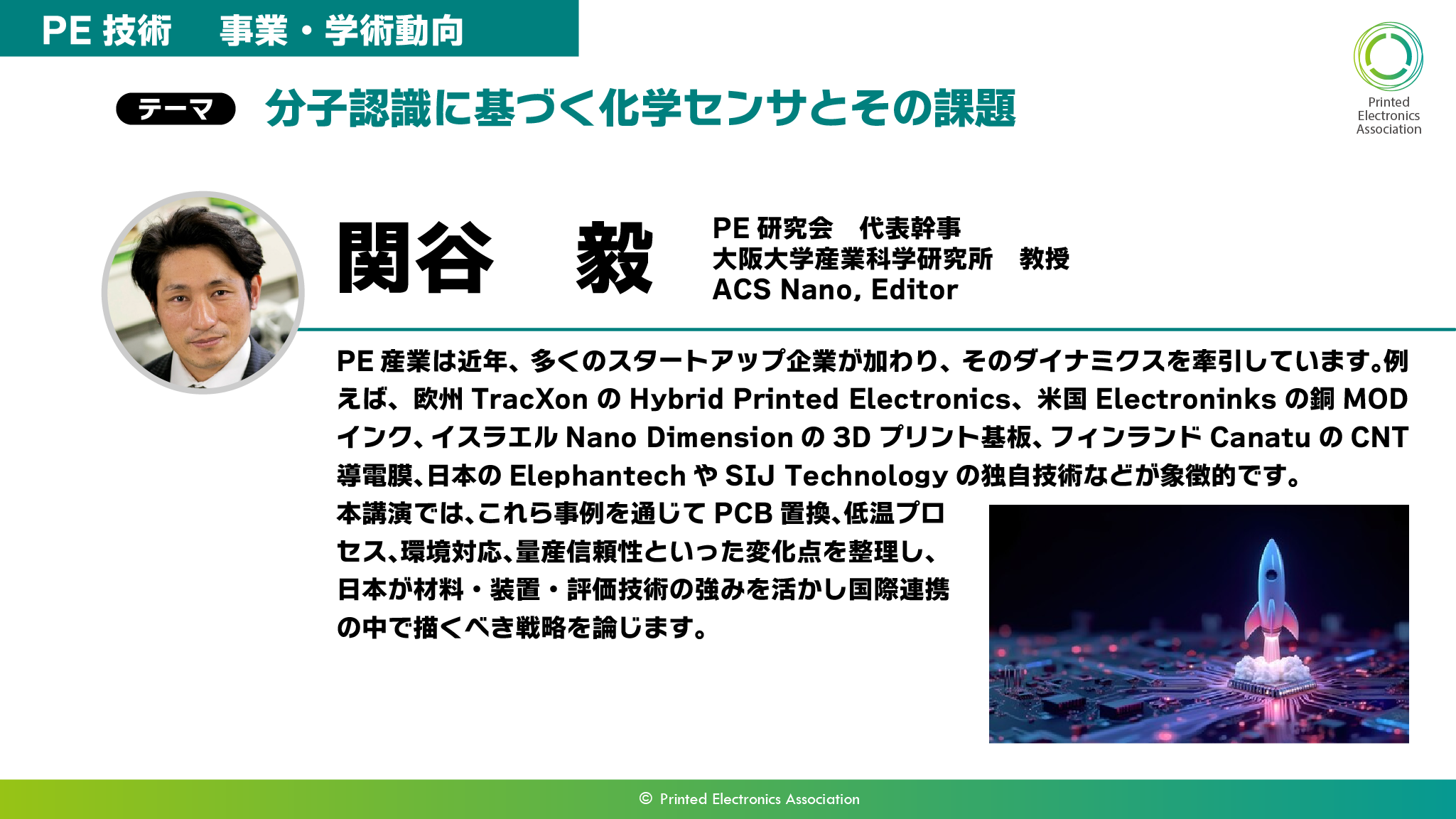 PE研究会 代表幹事 大阪大学産業科学研究所 教授 関谷 毅 |